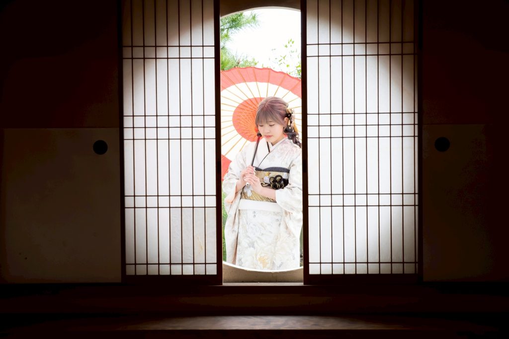 A:写真で最も重要なのは、顔の周りです。半衿や重ね衿など、顔のすぐ近くに来る色に白や薄いピンク、ゴールドなどの明るい色を取り入れると、写真写りがグッと良くなります。
